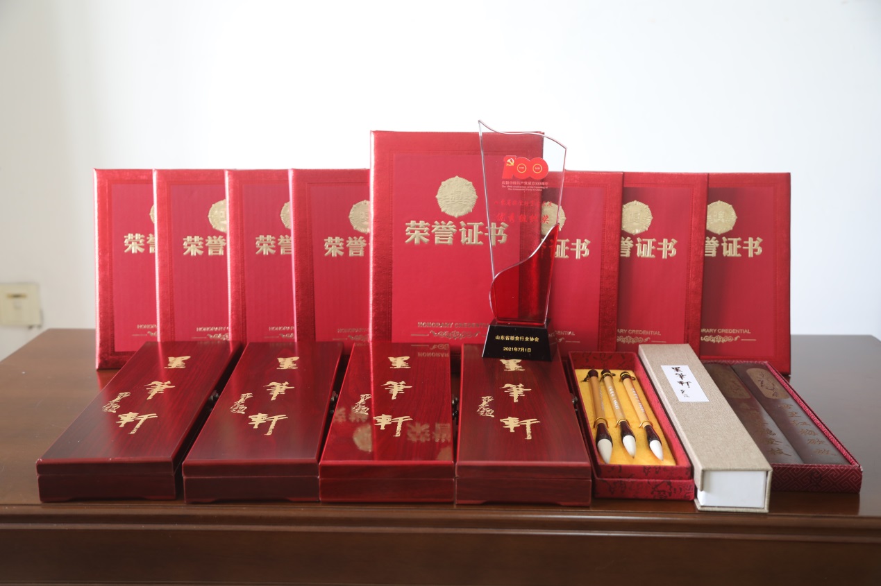 日前,我校陶传蔚、王欣、杜尚劼、赵永珂、董历年、庞友情等六名师生,在庆祝建党100周年“山东省粮食行业书法绘画展”上斩获佳绩,其中,教师代表王欣荣获一等奖,陶传蔚荣获二等奖,学生代表赵永柯、庞友情荣获三等奖。