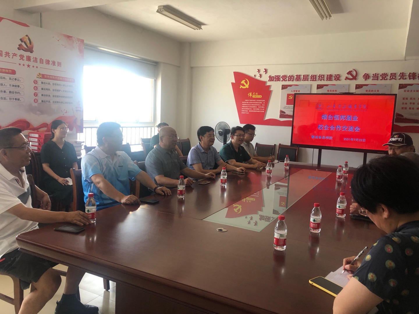 7月22日上午,烟台恒邦酒业董事长王家好一行四人来我校交流考察,学校副校长陶传蔚,粮油食品学院孙龙湖及各专业负责人参加座谈交流。