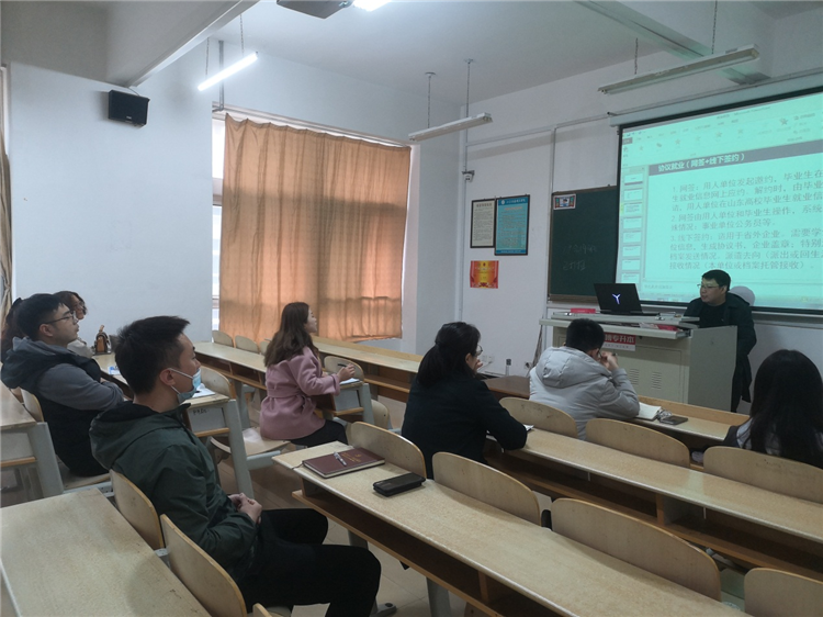 隋鹏飞首先对就业政策做了整体的解读,使大家对当前的就业形势和工作重点有了更加清晰地认识。他针对不同的就业类型分别做了强调和解释,指导学生正确填写高校毕业生就业信息网。随后隋鹏飞给班主任重点强调了教育部“四不准”的就业工作要求,提醒相关老师规范开展相关工作。在交流互动环节,针对毕业生面临的就业困惑、职业选择,就业心理、未来规划等问题,在线给予了耐心指导和详细解答,为学生提供了精准的指导服务。