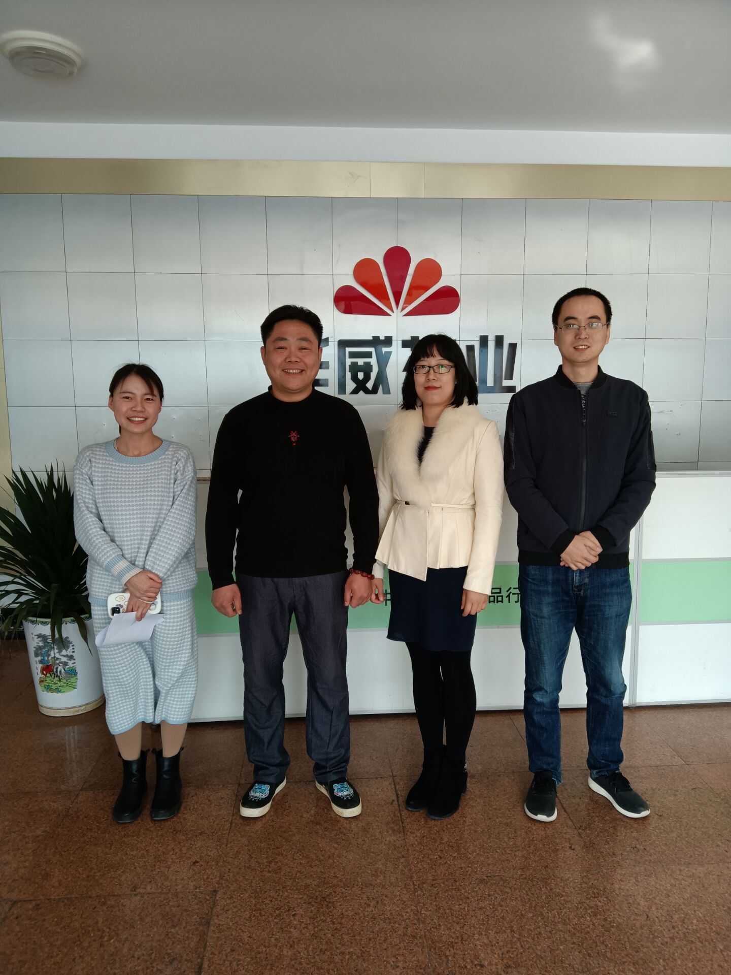 为顺利完成2019年度烟台市校地融合项目《粮食生物技术与健康食品产业化集群平台》,4月7日下午, 粮油食品学院黄丛聪博士与山东纬横数据科技有限公司一行人前往联合申报企业山东华威药业进行技术交流。