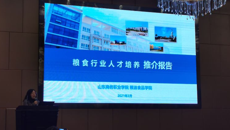 在会议交流环节,邵珍美作为山东商务职业学院代表向大会作了《粮食行业人才培养推介》报告,分享了山东商务职业学院粮油食品学院在专业群建设、人才培养、技能大赛、社会服务等方面取得的成绩。企业代表们对山东商务职业学院粮食类专业的产教融合办学思路颇为关注,纷纷表示赞赏,多家企业已表达校企合作意向,山东商务职业学院将于后期走访调研深化合作内容。