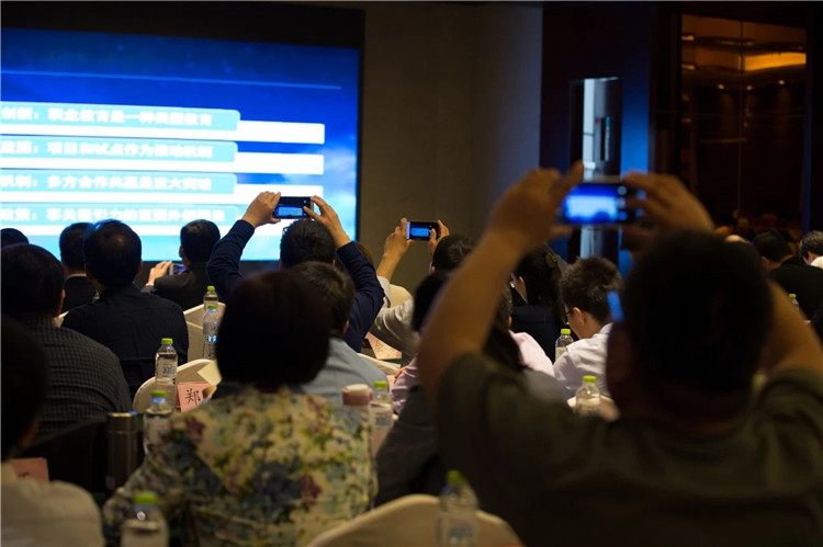 17日的产教融合型企业培育大会吸引了四十余家企业参与。教育部职业技术教育中心研究所评估中心负责人周凤华、烟台市职业教育研究室主任段威先后为到会企业与院校作了题为《理念创新与施工蓝图绘就中国未来职业教育发展之路》《政府引导、机制调控、产教融合、德技并修——烟台市政行企校研协同育人模式创新与实践》的报告。