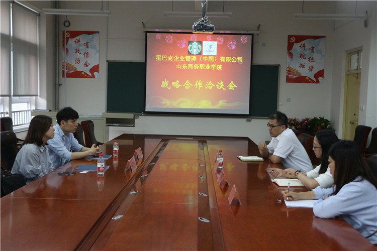 6月13日上午,经济管理系与星巴克企业管理(中国)有限公司在一体化教学楼A311举行了战略合作洽谈会,校企双方就建立全面战略合作伙伴事宜进行了深入的沟通和交流,会议由经济管理系副主任刘景光主持。