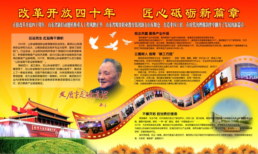 正值改革开放四十周年,山东省新旧动能转换重大工程风鹏正举,山东省粮食职业教育集团助力山东粮仓,打造中国工匠,在时代的铿锵韵律中翻开了发展的新篇章。