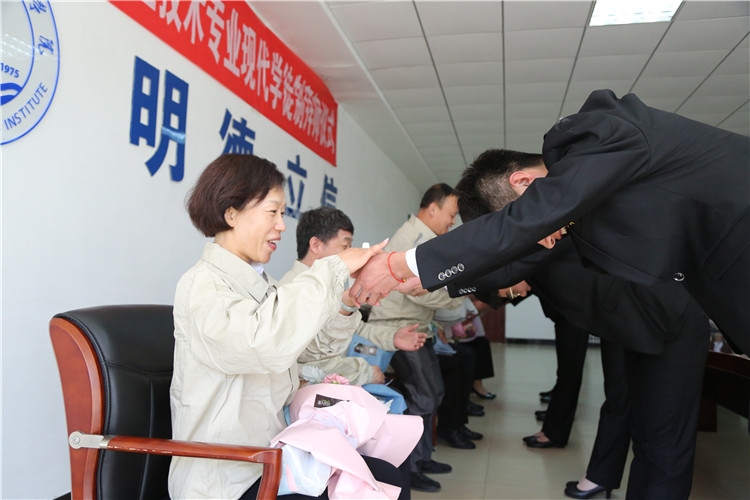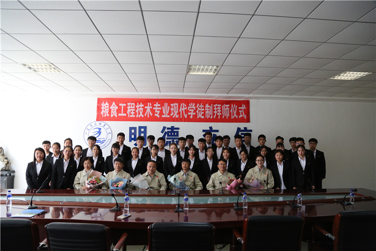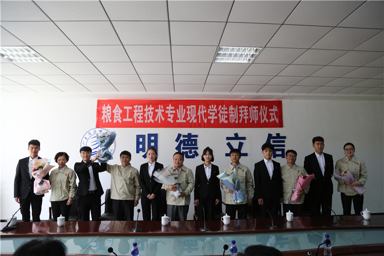 献上一束花,师傅顶呱呱,敬上一杯茶,徒弟到门下。行拜师古礼,传承工匠技艺,弘扬工匠精神,厚植工匠文化,培育时代匠人。5月8日下午,山东商务职业学院与滨州中裕食品有限公司在学校会议室举行粮食工程技术专业省级现代学徒制试点中裕班开班及拜师仪式。学校院长杨新春、党委副书记刘艳蔚、中裕人力资源总监丁云美、校企双方相关领导教师和现代学徒制中裕班40名同学共同参加本次活动。