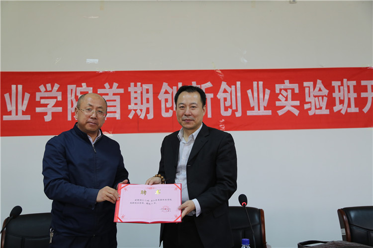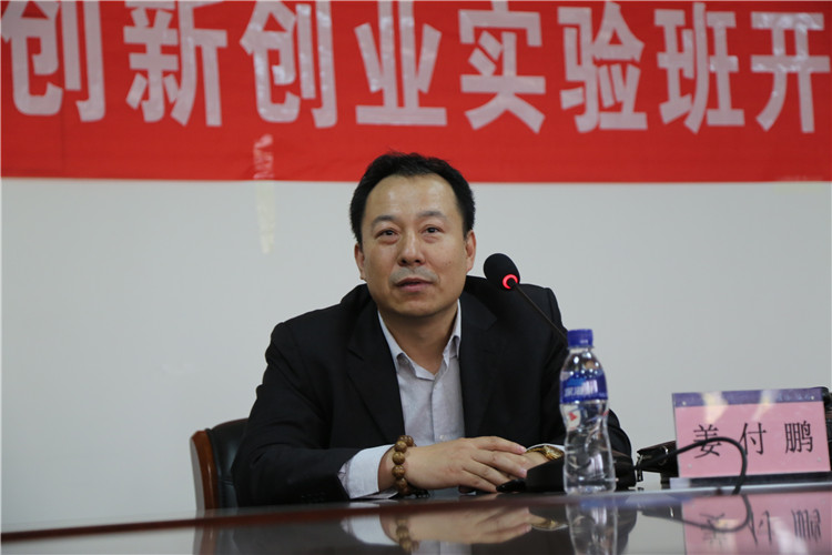陶传蔚作开班动员讲话,对姜付鹏总经理的到来表示热烈欢迎,介绍了学校开办创新创业实验班的意义。他指出近年来我校高度重视创新创业教育工作,设置了依次递进的三层创新创业教育课程和培养体系,本期创新创业实验班就是该体系的重要组成部分,实验班将开设创业管理、互联网+、思政教育等课程,对学生进行跨界培养,探索课内与课外、课程与实践多元培养模式,深入探讨校企校校协同育人机制,将创新实验班打造成创业孵化、大赛训练、科技创新、思政与创新创业融合的实验田,切实提高学生的综合素质和创新创业能力、就业能力、可迁移能力。