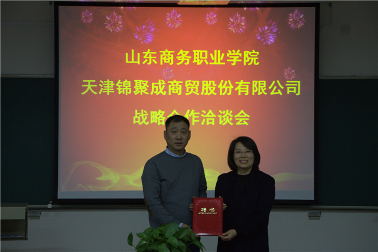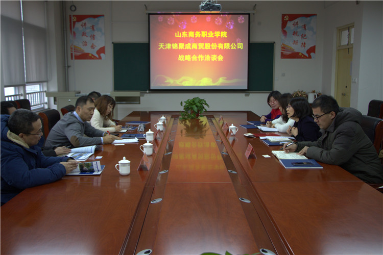 1月4日下午,经济管理系与天津锦聚成商贸股份有限公司在一体化教学楼A311举行了战略合作洽谈会。天津锦聚成商贸股份有限公司董事长苑双庆及公司高管、经济管理系主任于邢香、副主任刘景光以及部分教师代表参加会议。校企双方就建立全面战略合作伙伴事宜进行了深入的沟通和交流,会议由经济管理系主任于邢香主持。
