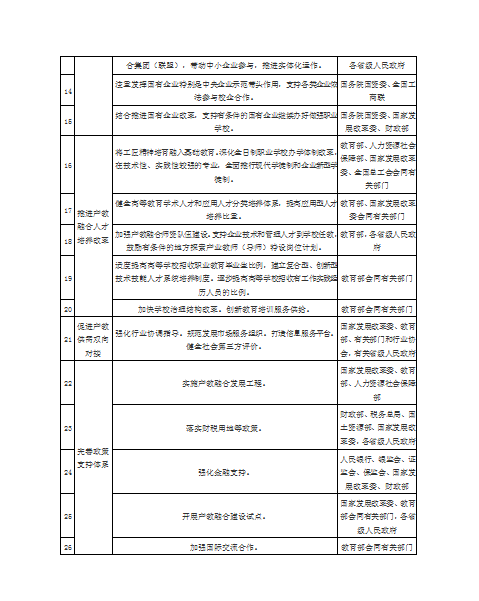 (二十九)强化工作协调。加强组织领导,建立发展改革、教育、人力资源社会保障、财政、工业和信息化等部门密切配合,有关行业主管部门、国有资产监督管理部门积极参与的工作协调机制,加强协同联动,推进工作落实。各省级人民政府要结合本地实际制定具体实施办法。