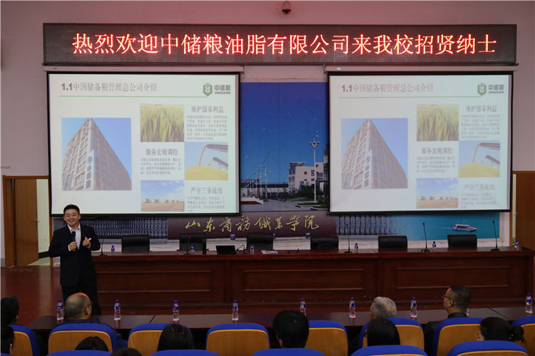 为了让应届毕业生得到更多的就业机会,同时让企业能够获得更多优质的应聘者,10月13日上午8:30,食品工程系和机电工程系携手中储粮油脂有限公司在图书馆报告厅召开了企业招聘宣讲会,本次宣讲会由我校2007级毕业生陈经理具体讲解。