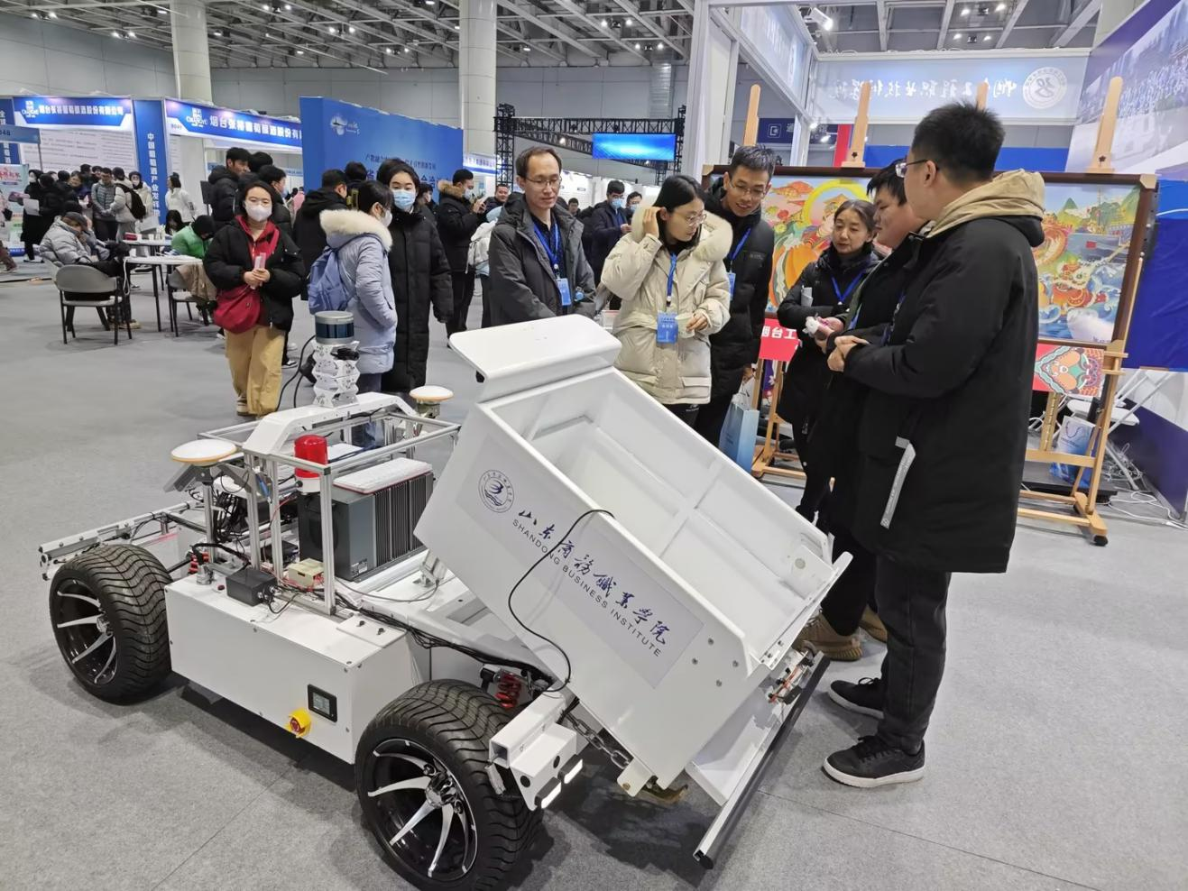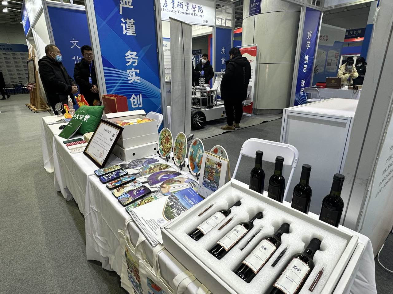 学校党委高度重视本次参展活动,相关职能部门、二级学院精心准备和筹划,通过“展板+视频+实物+操作”的演示方式综合展示了学校近年来在校企合作、产教融合及教学科研等方面取得的成果。智能化运粮车、“陶”礼天下·“福”满人间及“一个大苹果”系列文创作品、扎染布艺、桑椹酒、复合益生菌粉、海洋修复精华等一经亮相便吸引了兄弟院校及众多学生参观欣赏,学校老师为现场参观人员介绍了运粮车的设计理念和应用方式,分享了各类作品的创意来源与独特之处,受到同行和企业的普遍好评。