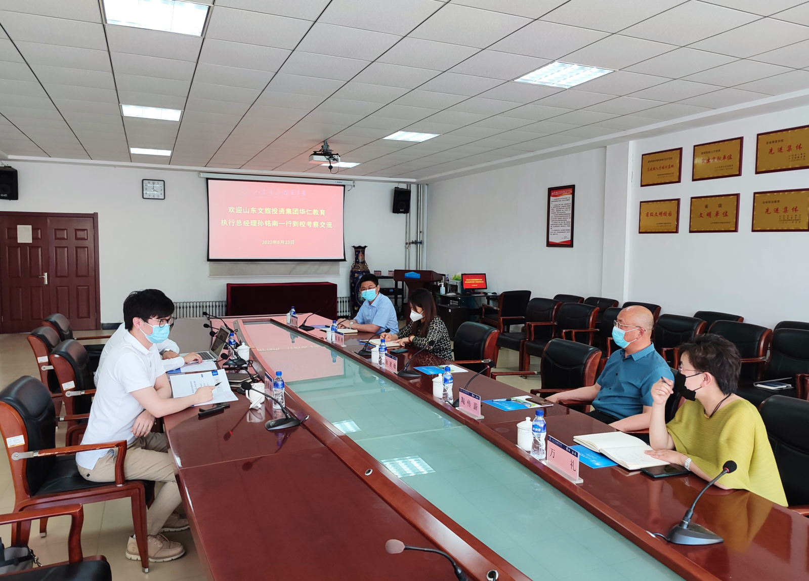 5月23日,山东文旅集团华仁教育执行总经理孙铭南一行来访我校,学校副校长陶传蔚、校企合作与就业工作处、文化旅游学院、艺术设计学院负责人在一楼会议室接待来访客人。