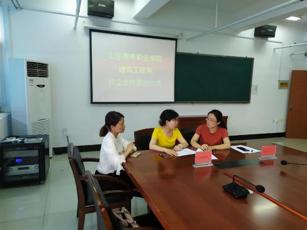 1 月 27 日,山东商务职业学院与山东鲁信文化传媒投资集团有限公司共建“智慧文旅产业学院”签约仪式在学校会议室隆重举行。学校党委书记耿建敏、副院长陶传蔚,山东鲁信文化传媒投资集团有限公司副总经理刘川等出席仪式,校企合作与就业工作处、文化旅游学院、信息工程学院等部门负责人及相关专业老师参加仪式,仪式由校企合作与就业工作处处长范彩荣主持。