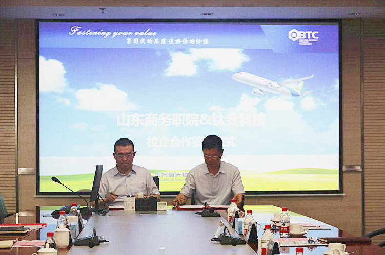 参观过后,校企双方进行了深入洽谈,王肇宇对学校的来访表示热烈欢迎,并详细介绍了公司的组成、主营业务、公司业绩、业界地位等情况。耿建敏介绍了学校的历史沿革、办学理念、人才培养、教科研及专业建设等基本情况,并就下一步校企深入合作交换了意见。本着优势互补、共同发展的原则,我校与东方蓝天钛金科技有限公司签署了《校企合作协议》。