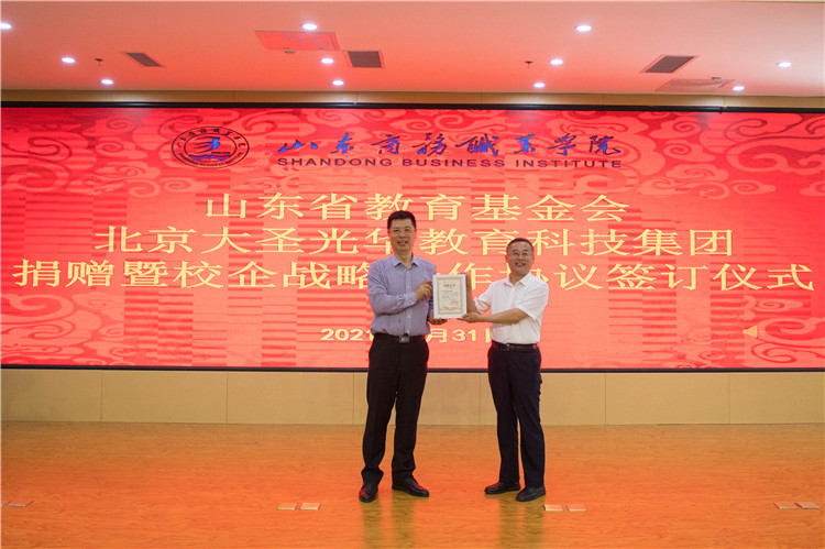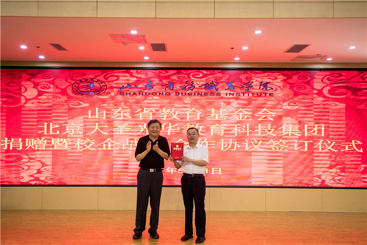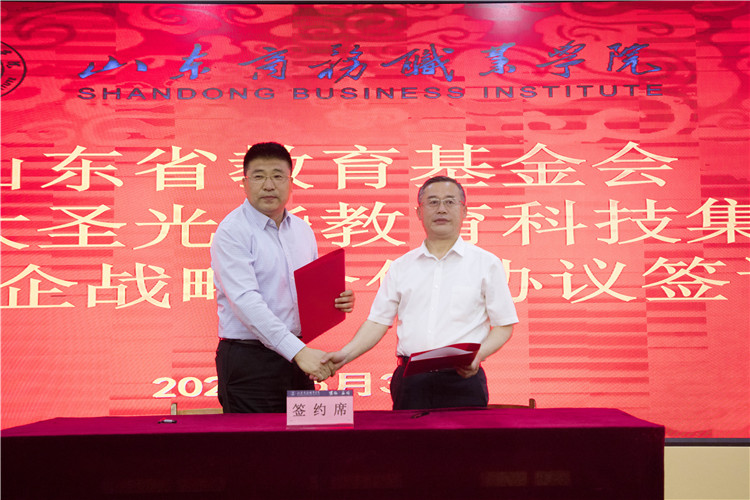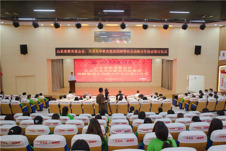 5月31日,山东省教育基金会、北京大圣光华教育科技集团捐赠暨校企战略合作协议签订仪式在我校党性教育基地举行,我校党委书记耿建敏、山东省教育厅原副厅长、巡视员,山东省教育基金会理事长陈光华、北京大圣光华教育科技集团董事长李文绪出席仪式。仪式由学校副院长张云生主持。
