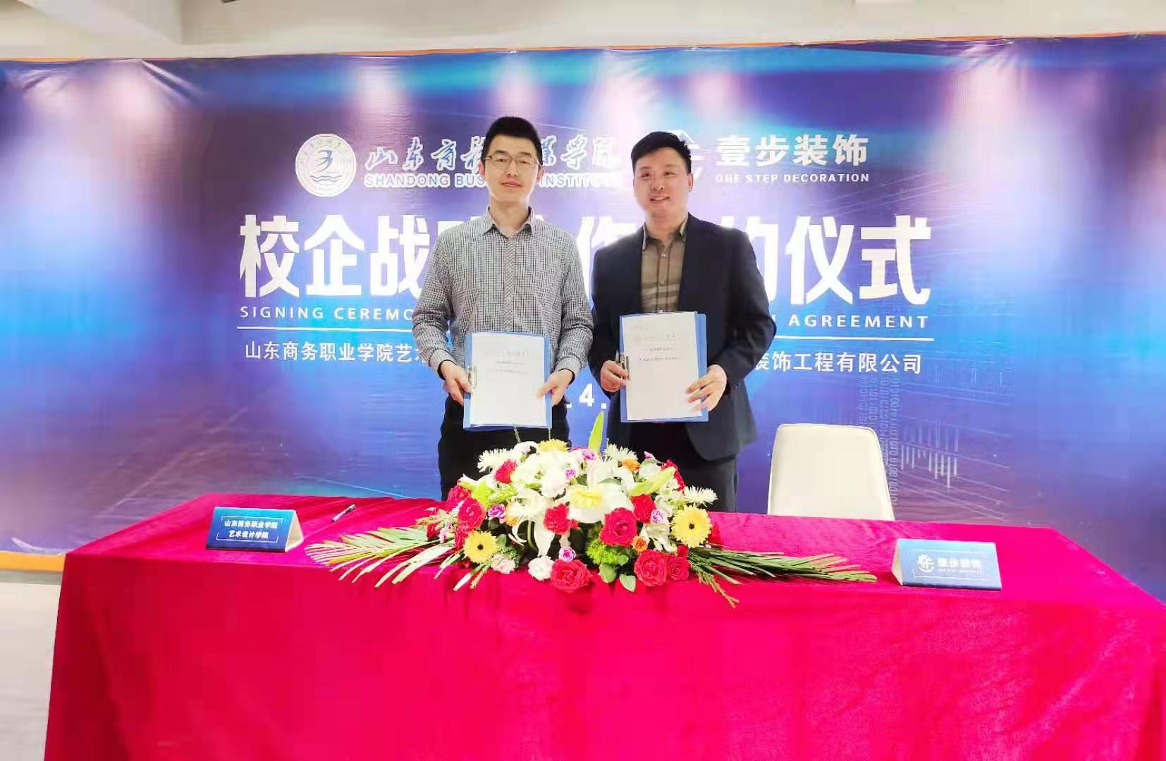 4月21日,艺术设计学院环境艺术设计专业和烟台壹步装饰工程有限公司,在壹步装饰公司三楼举办了校企战略合作签约仪式,出席此次签约仪式的有艺术设计学院副院长王海涛、环境艺术设计专业教研室主任张信超、环境艺术设计专业教研室教师刘艳、烟台壹步装饰工程有限公司总经理冉全金。