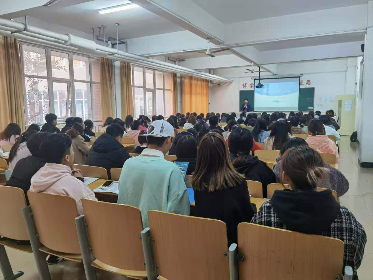 张晋代表企业发言,她首先代表大圣光华教育集团对会计系大力支持校企合作工作表示感谢,从2018年到2020年已经多次合作,是真正的知根知底。接下来她对学生谈了几点要求,一是遵守法律和公司、学校规章制度;二是苦练本领,当下知识更新速度加快,作为教育企业更要走在所有人的前面,入职以后会有高强度的培训工作,同学们一定要放低姿态,认真学习。