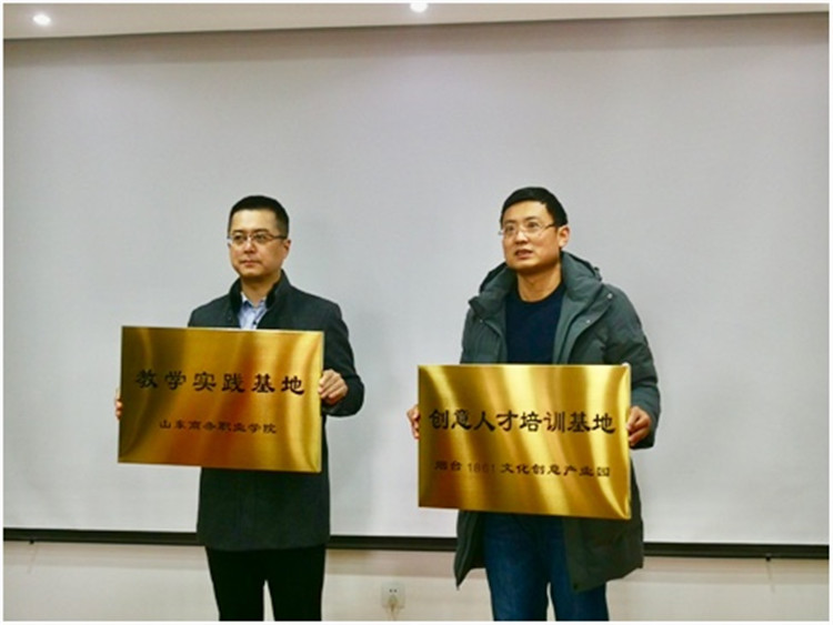 学校与园区签订合作协议,信息与艺术设计系与5家影视动漫公司签订校企合作协议,其中3家为韩国动漫企业,2家为影视制作企业。随后进行了授牌仪式,烟台1861文化创意产业园成为学院的教学实践基地,学院成为园区的创意人才培训基地。